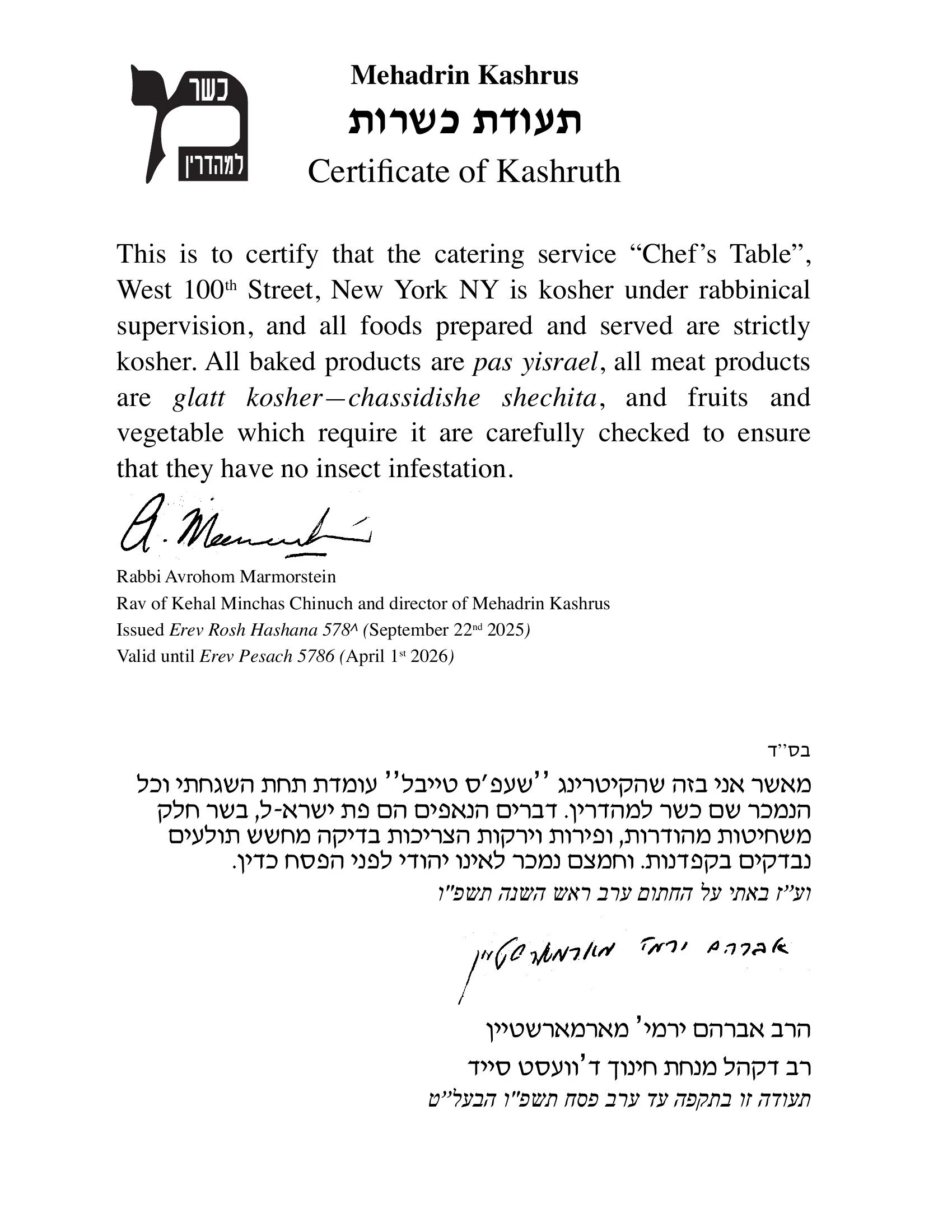 Kosher Certification